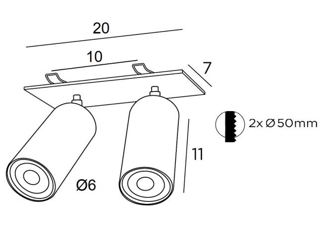 - Puissance : 2 x 50W Max GU10
